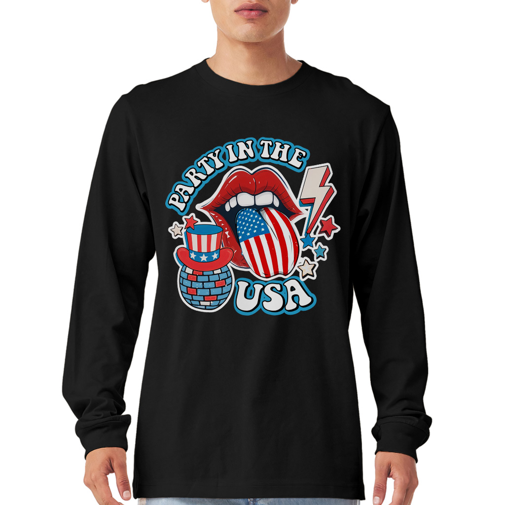 Party in The USA Long Sleeve T-Shirt – Retro Graphic T-Shirt – Trendy Usa Basic Tee