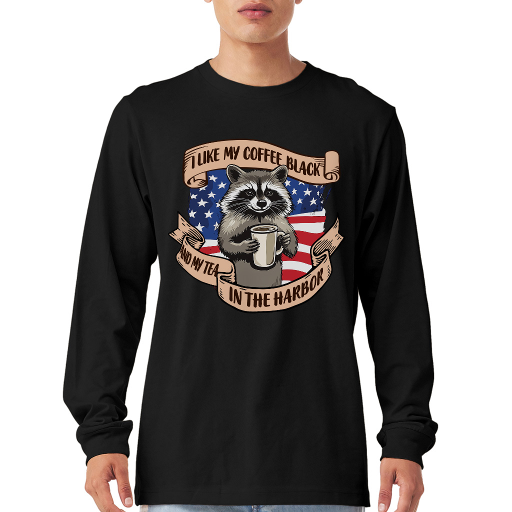 Tea in the Harbor Long Sleeve T-Shirt – Funny Raccoon T-Shirt – Cool Quote Basic Tee