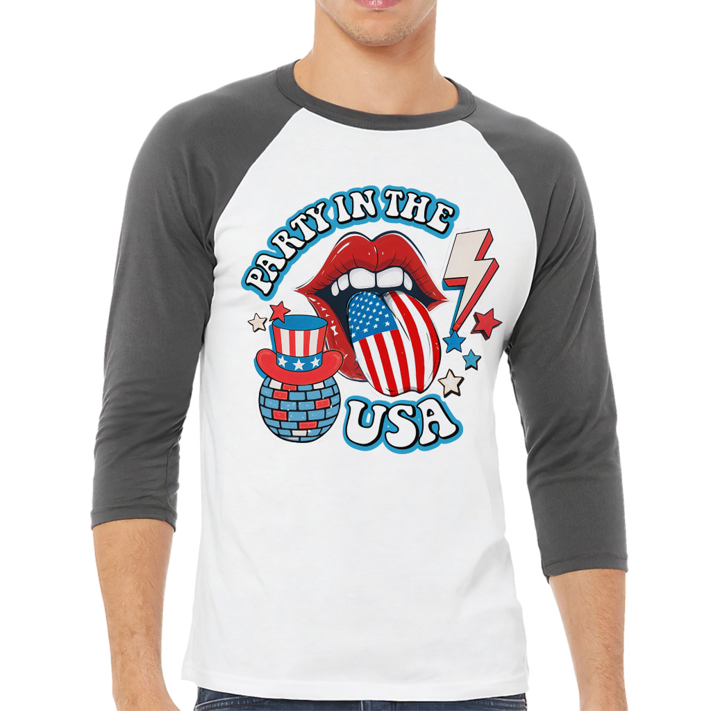 Party in The USA Baseball T-Shirt – Retro Graphic 3/4 Sleeve – Trendy Usa Raglan Jersey Shirt