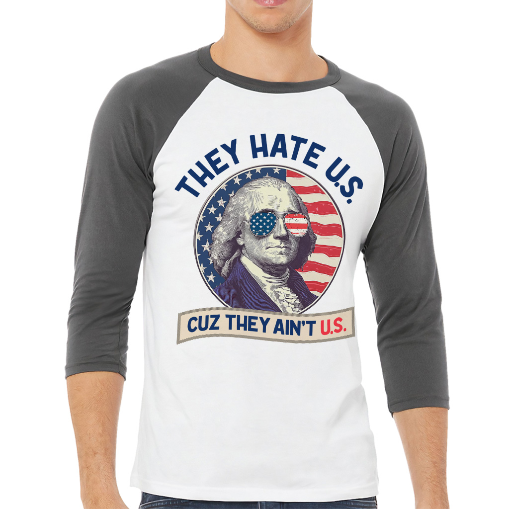 They Hate Us Cuz They Ain’t Us Baseball T-Shirt – Patriotic Celebration 3/4 Sleeve – George Washington Raglan Jersey Shirt