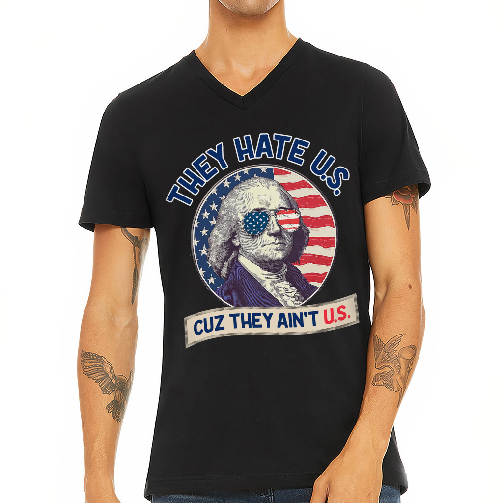 They Hate Us Cuz They Ain’t Us V-Neck T-Shirt – Patriotic Celebration Basic T-Shirt – George Washington Tee