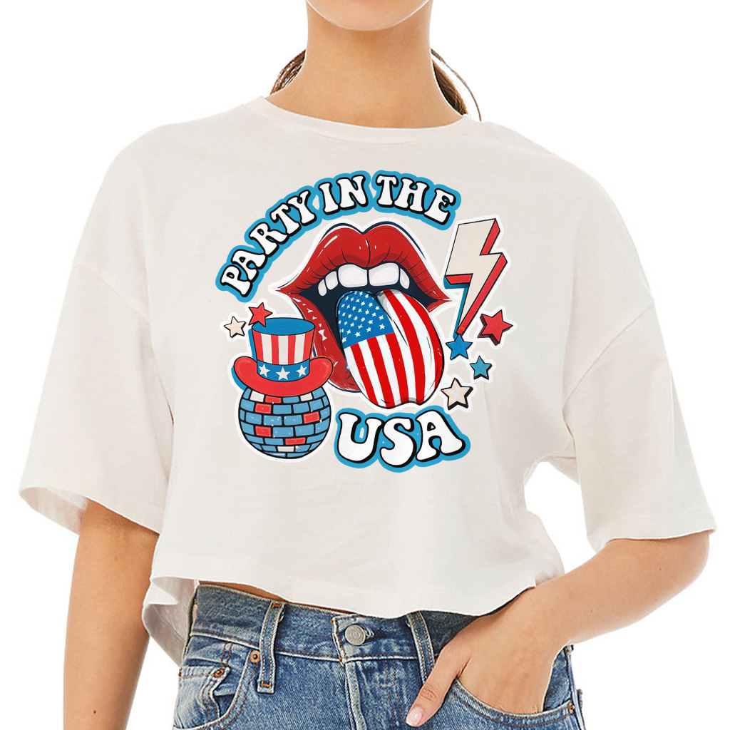 Party in The USA Cropped T-Shirt – Trendy Usa Trendy Tee – Retro Graphic Women’s Basic T-Shirt