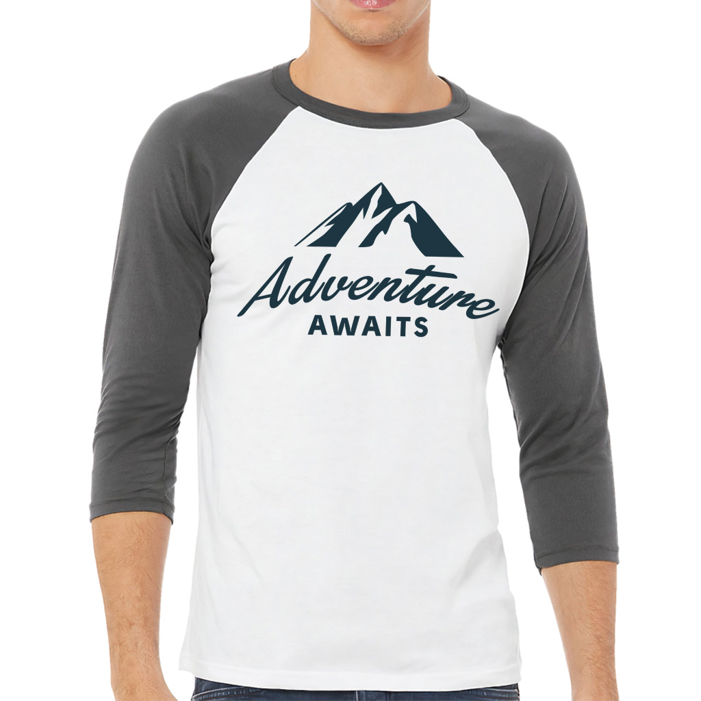 Adventure Awaits Baseball T-Shirt – Camping 3/4 Sleeve – Hiking Raglan Jersey Shirt