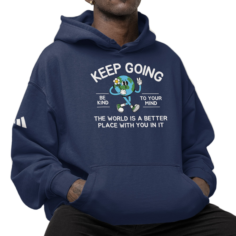 Keep Going adidas Hoodie – The World Is a Better Place With You in It Unisex Fleece Hoodie – Retro Hooded Sweatshirt