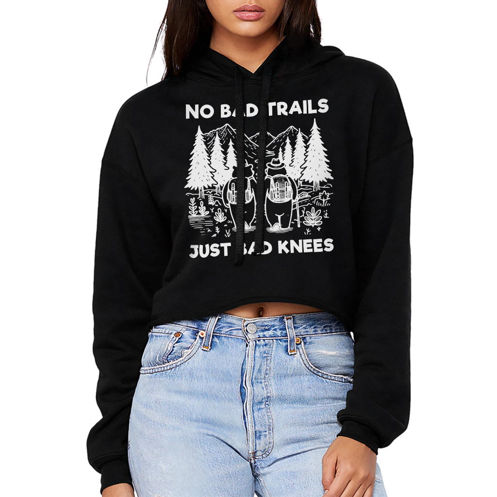 No Bad Trails Just Bad Knees Women’s Cropped Hoodie – Retro Adventure Hooded Sweatshirt – Cute Bears Super Crop Top Hoodies