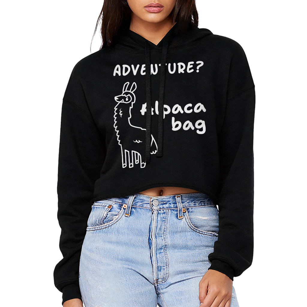Adventure Alpaca Bag Women’s Cropped Hoodie – Funny Pun Hooded Sweatshirt – Adventure Super Crop Top Hoodies