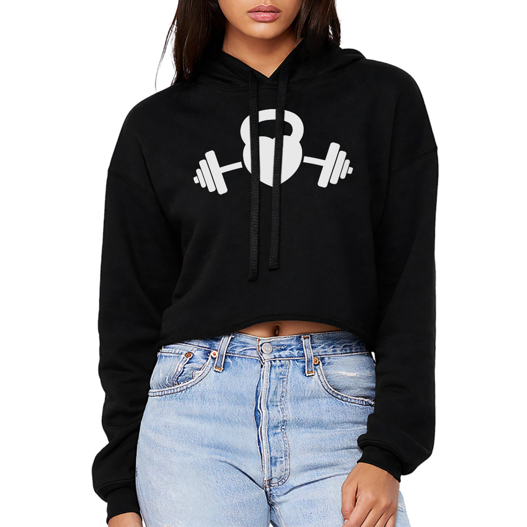 Barbell Workout Women’s Cropped Hoodie – Fitness Hooded Sweatshirt – Exercise Super Crop Top Hoodies