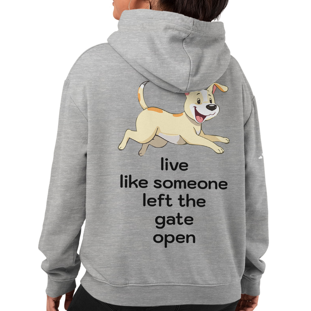Live Like Someone Left the Gate Open adidas Hoodie – Positive Message Unisex Fleece Hoodie – Inspirational Hooded Sweatshirt