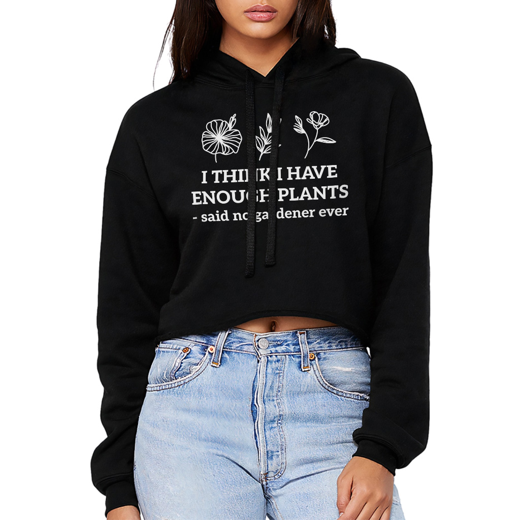 I Think I Have Enough Plants Women’s Cropped Hoodie – Plant Lover Hooded Sweatshirt – Gardener Super Crop Top Hoodies