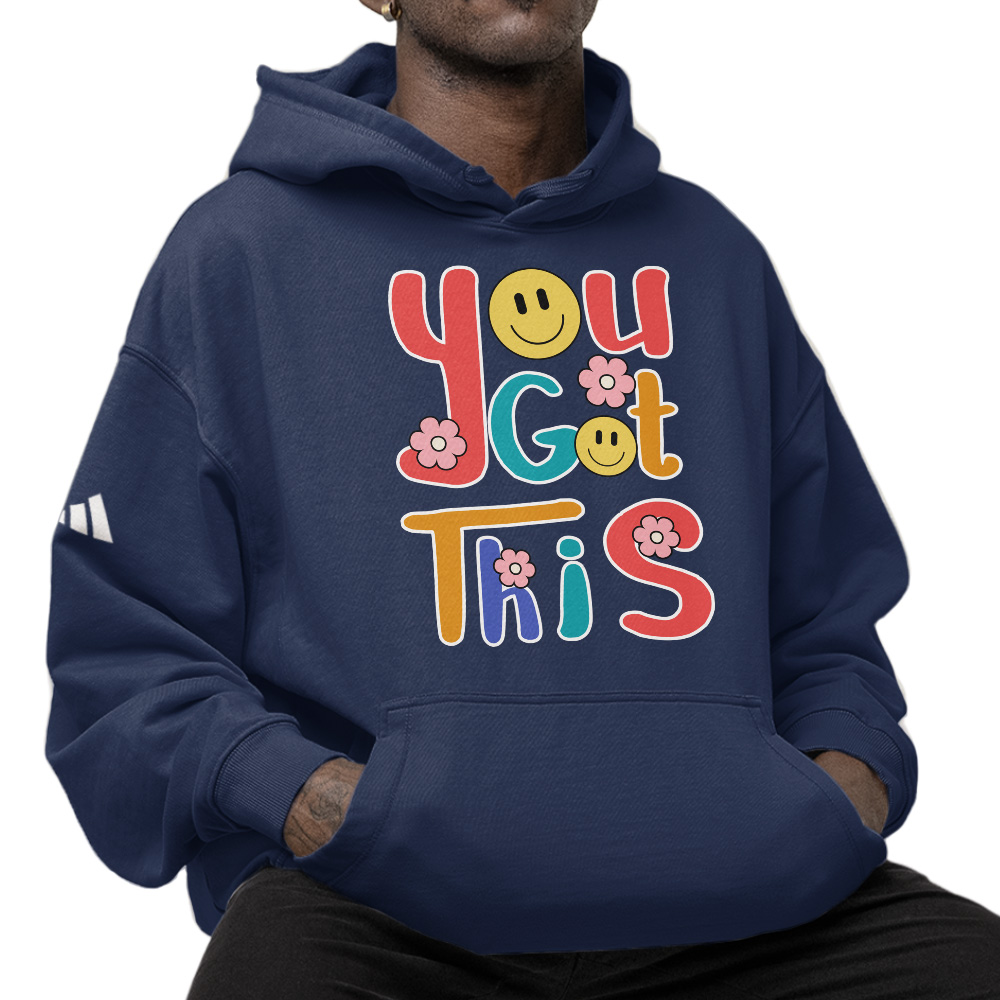 You Got This adidas Hoodie – Motivational Unisex Fleece Hoodie – Retro Groovy Hooded Sweatshirt