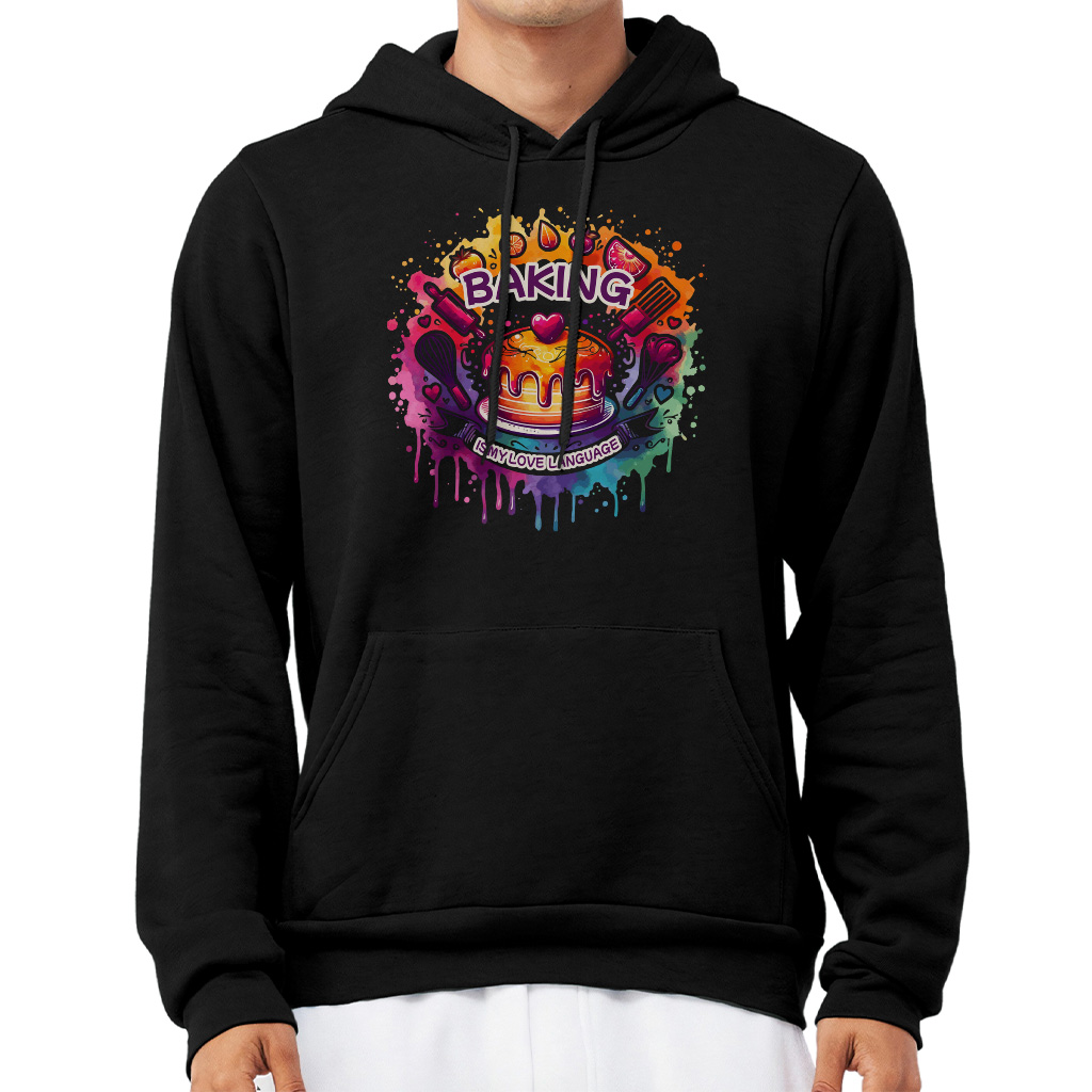 Baking Is My Love Language Hoodie – Kitchen Chef Hooded Sweatshirt – Colorful Graphic Unisex Hoodie