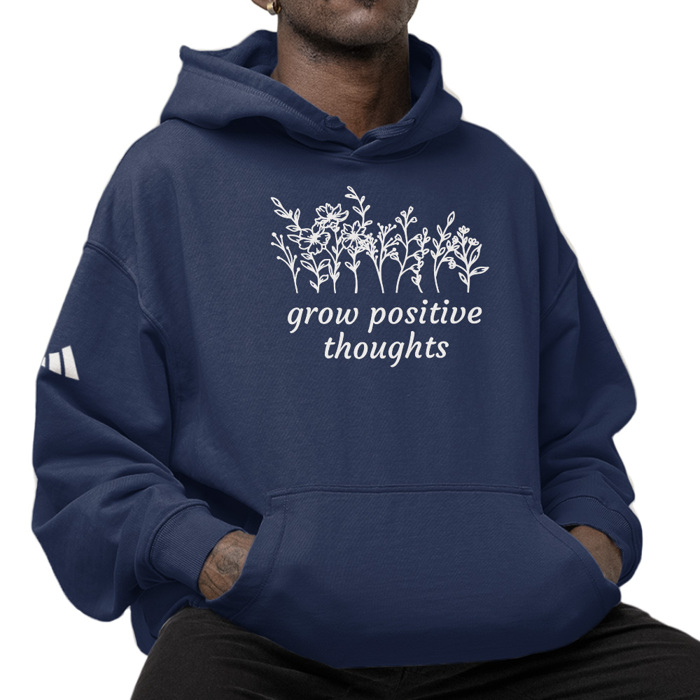Grow Positive Thoughts adidas Hoodie – Kindness Unisex Fleece Hoodie – Flowers Graphic Hooded Sweatshirt