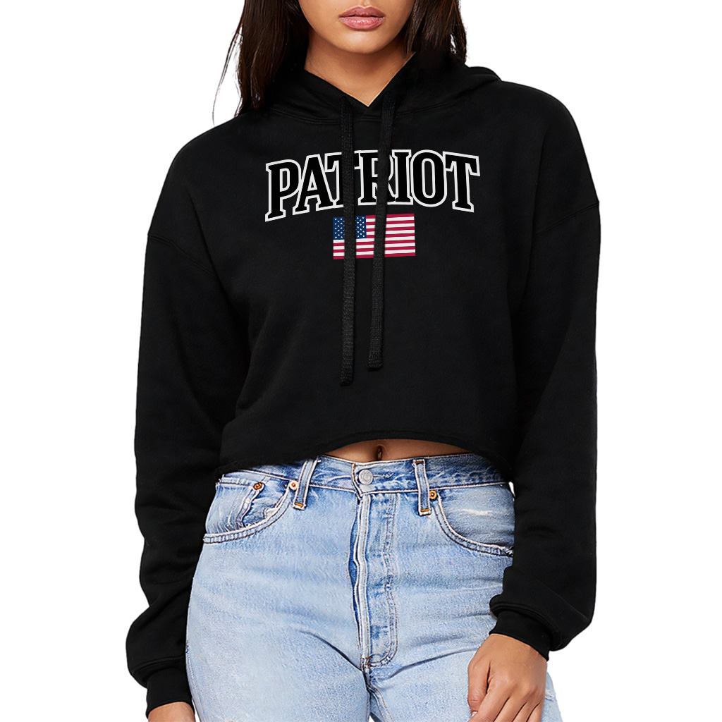 America Flag Patriot Women’s Cropped Hoodie – USA Hooded Sweatshirt – Patriotic Super Crop Top Hoodies
