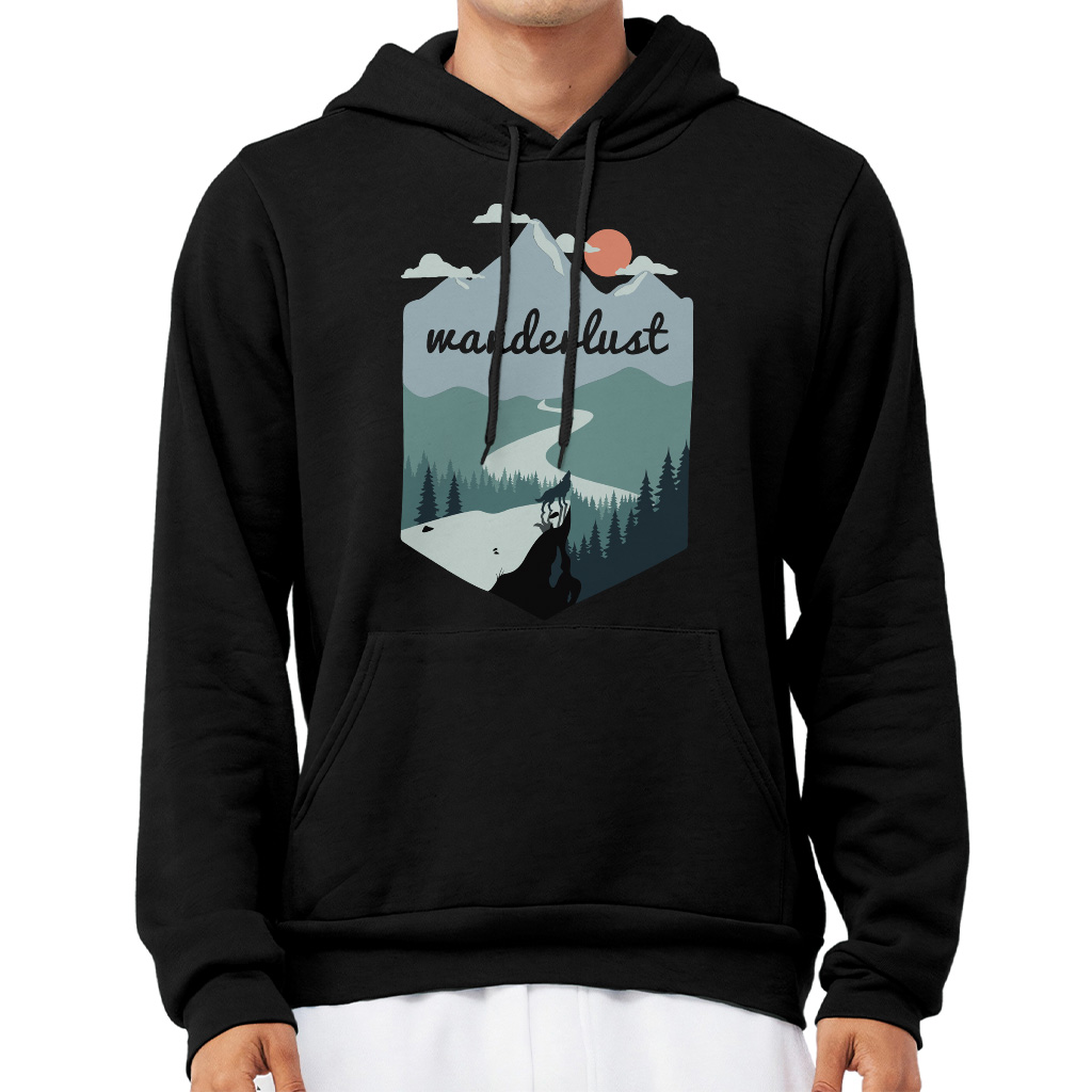 Wanderlust Hoodie – Mountains Hooded Sweatshirt – Outdoorsy Unisex Hoodie