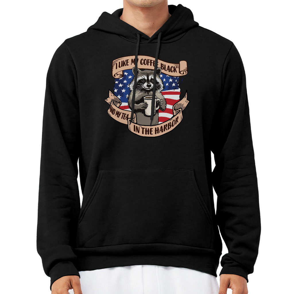 Tea in the Harbor Hoodie – Cool Quote Hooded Sweatshirt – Funny Raccoon Unisex Hoodie