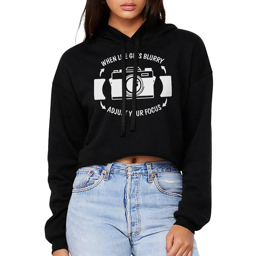 When Life Gets Blurry Adjust Your Focus Women’s Cropped Hoodie – Camera Hooded Sweatshirt – Funny Photographer Super Crop Top Hoodies