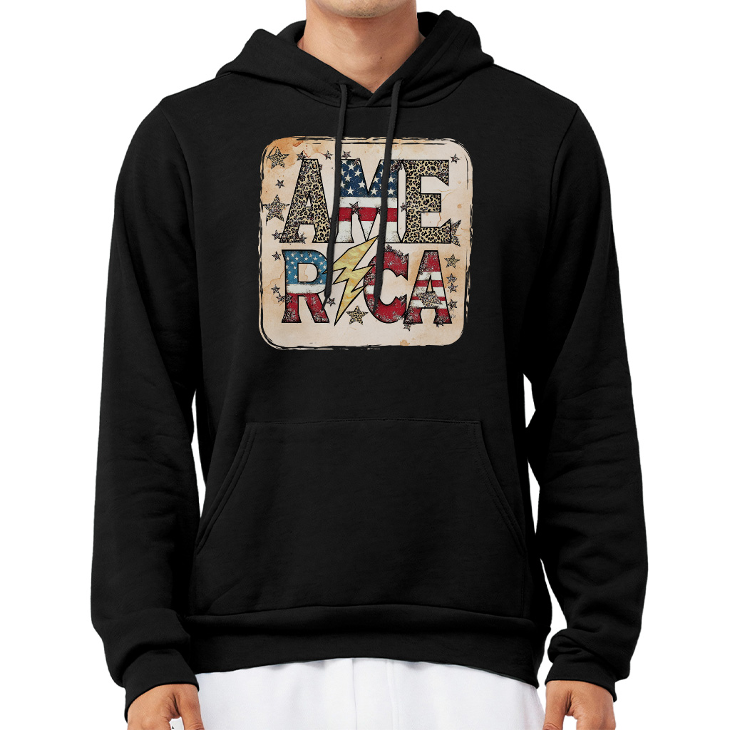 America Graphic Hoodie – Independence Day Hooded Sweatshirt – Retro Design Unisex Hoodie