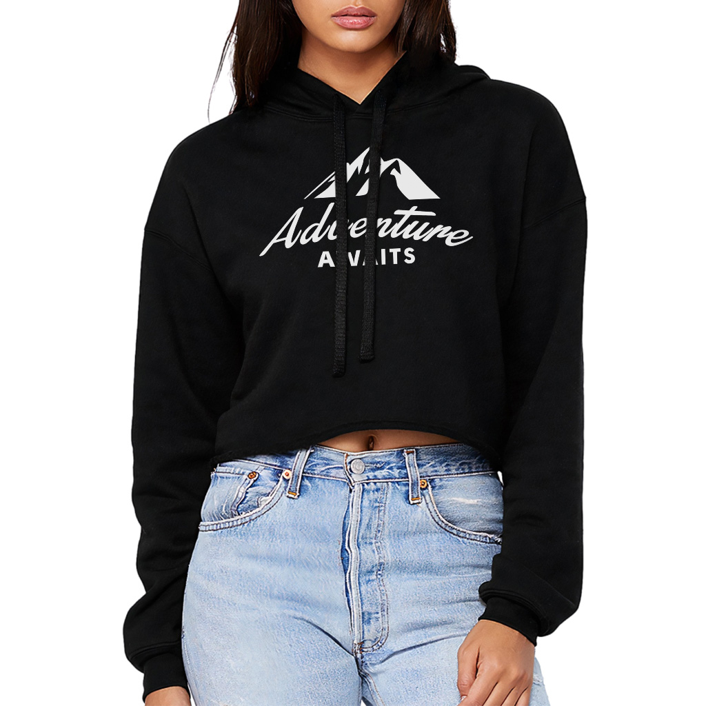 Adventure Awaits Women’s Cropped Hoodie – Hiking Hooded Sweatshirt – Camping Super Crop Top Hoodies