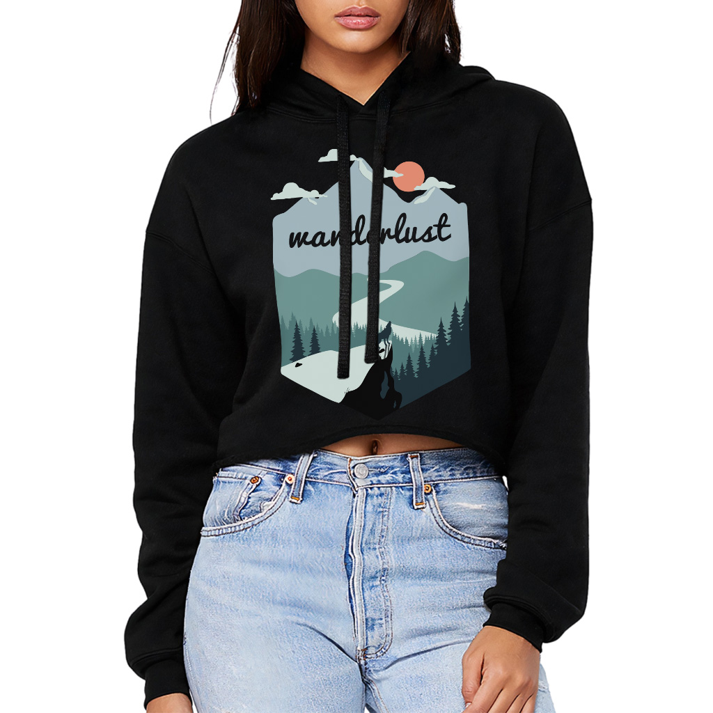 Wanderlust Women’s Cropped Hoodie – Outdoorsy Hooded Sweatshirt – Mountains Super Crop Top Hoodies