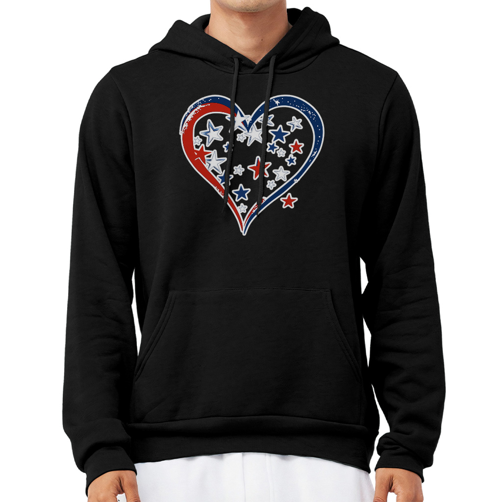 Red White Blue Heart Hoodie – Cute USA Hooded Sweatshirt – USA Flag Unisex Hoodie