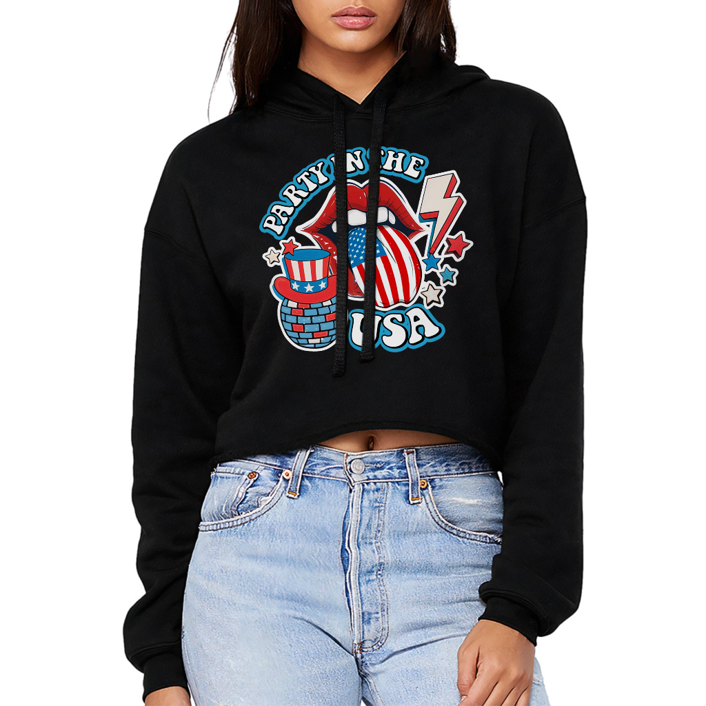 Party in The USA Women’s Cropped Hoodie – Trendy Usa Hooded Sweatshirt – Retro Graphic Super Crop Top Hoodies