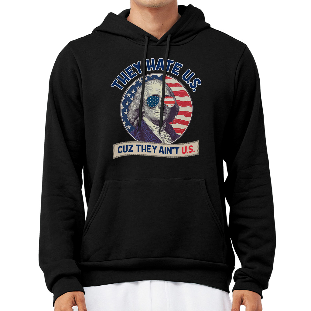 They Hate Us Cuz They Ain’t Us Hoodie – George Washington Hooded Sweatshirt – Patriotic Celebration Unisex Hoodie