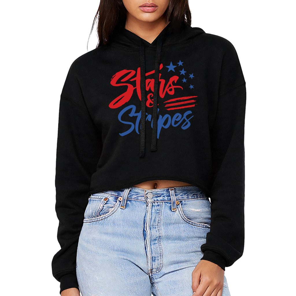 Stars and Stripes Women’s Cropped Hoodie – Memorial Day Hooded Sweatshirt – Minimalist Design Super Crop Top Hoodies