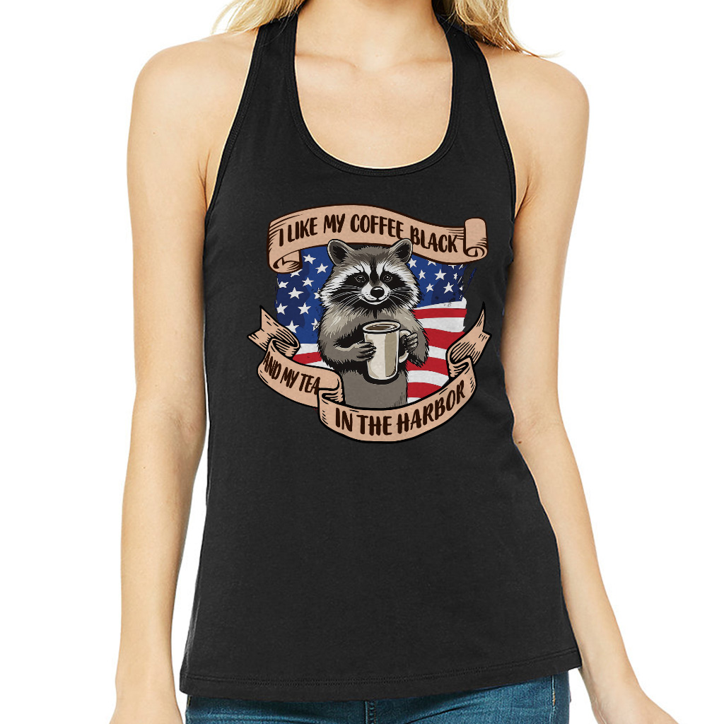 Tea in the Harbor Racerback Tank – Funny Raccoon Tank Top – Cool Quote Tank