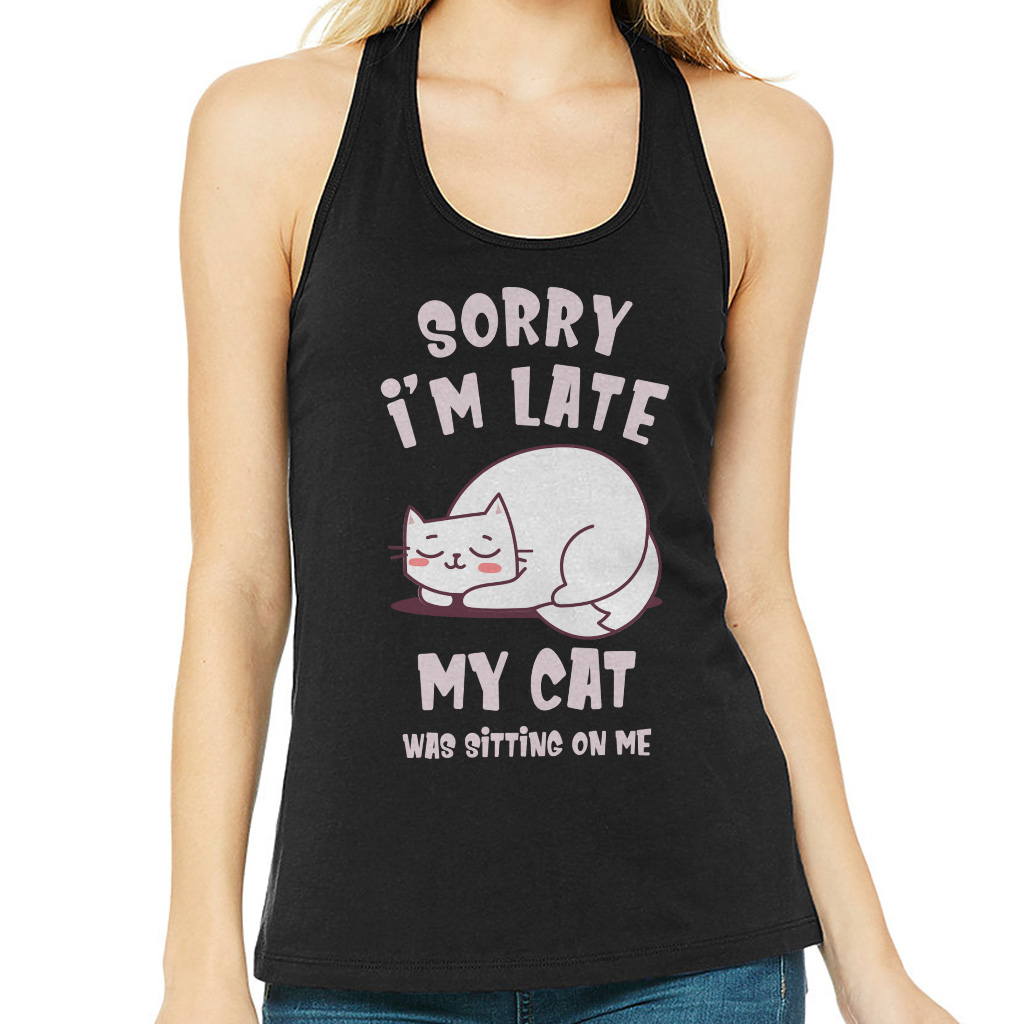 Sorry I’m Late My Cat Was Sitting On Me Racerback Tank – Funny Graphic Tank Top – Cool Cat Tank