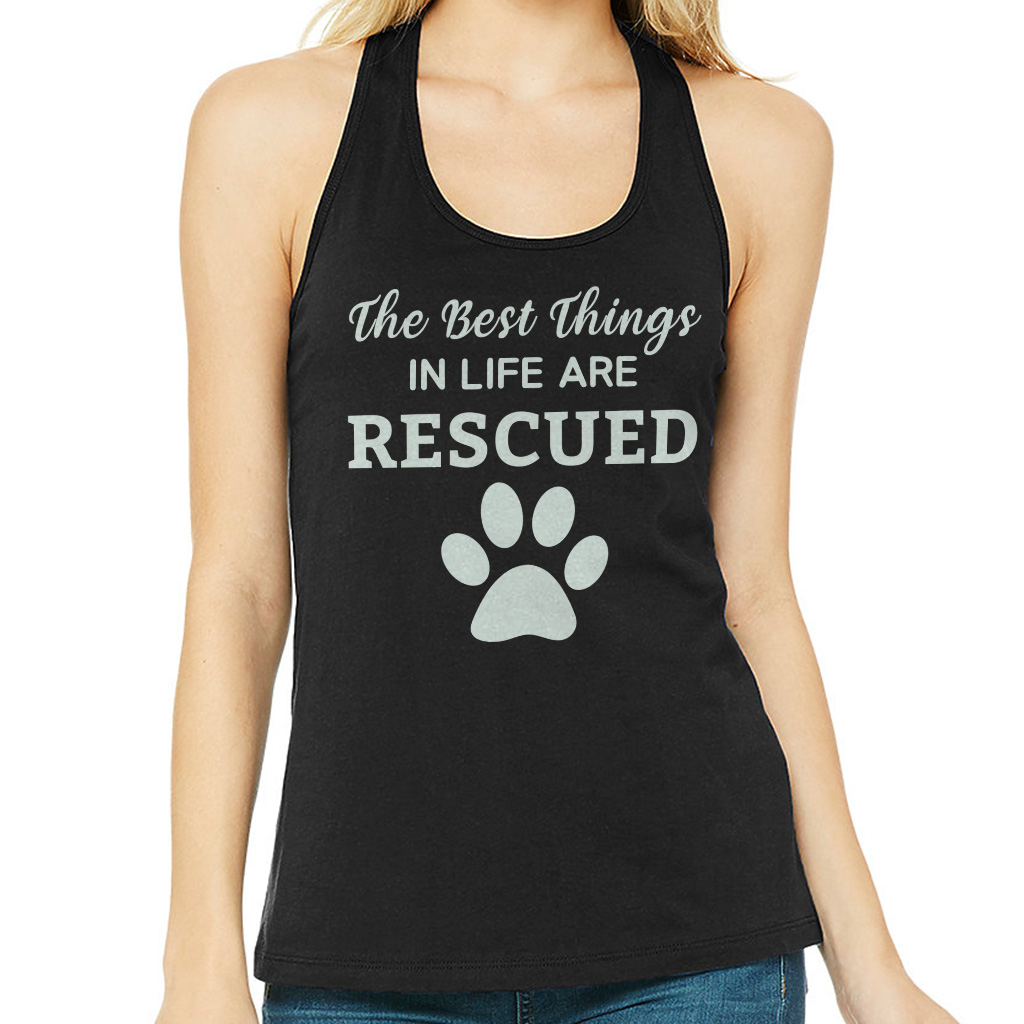 The Best Things in Life Are Rescued Racerback Tank – Rescue Dog Tank Top – Paw Print Tank