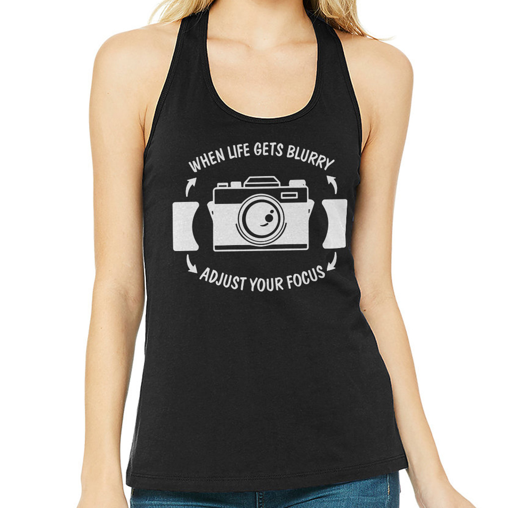 When Life Gets Blurry Adjust Your Focus Racerback Tank – Funny Photographer Tank Top – Camera Tank