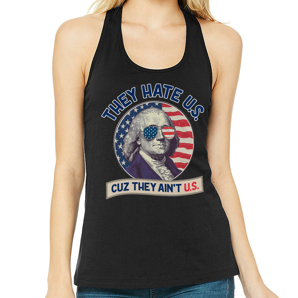 They Hate Us Cuz They Ain’t Us Racerback Tank – Patriotic Celebration Tank Top – George Washington Tank