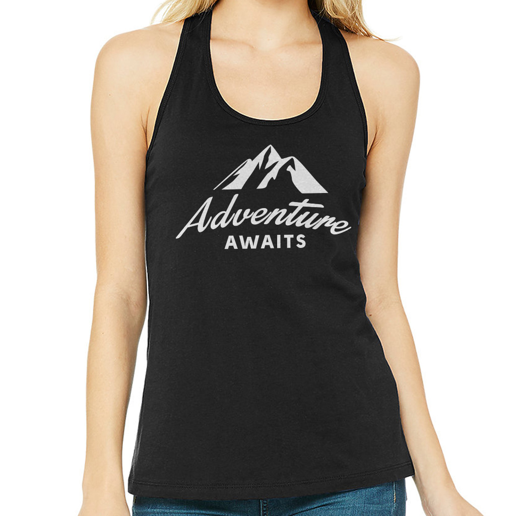 Adventure Awaits Racerback Tank – Camping Tank Top – Hiking Tank