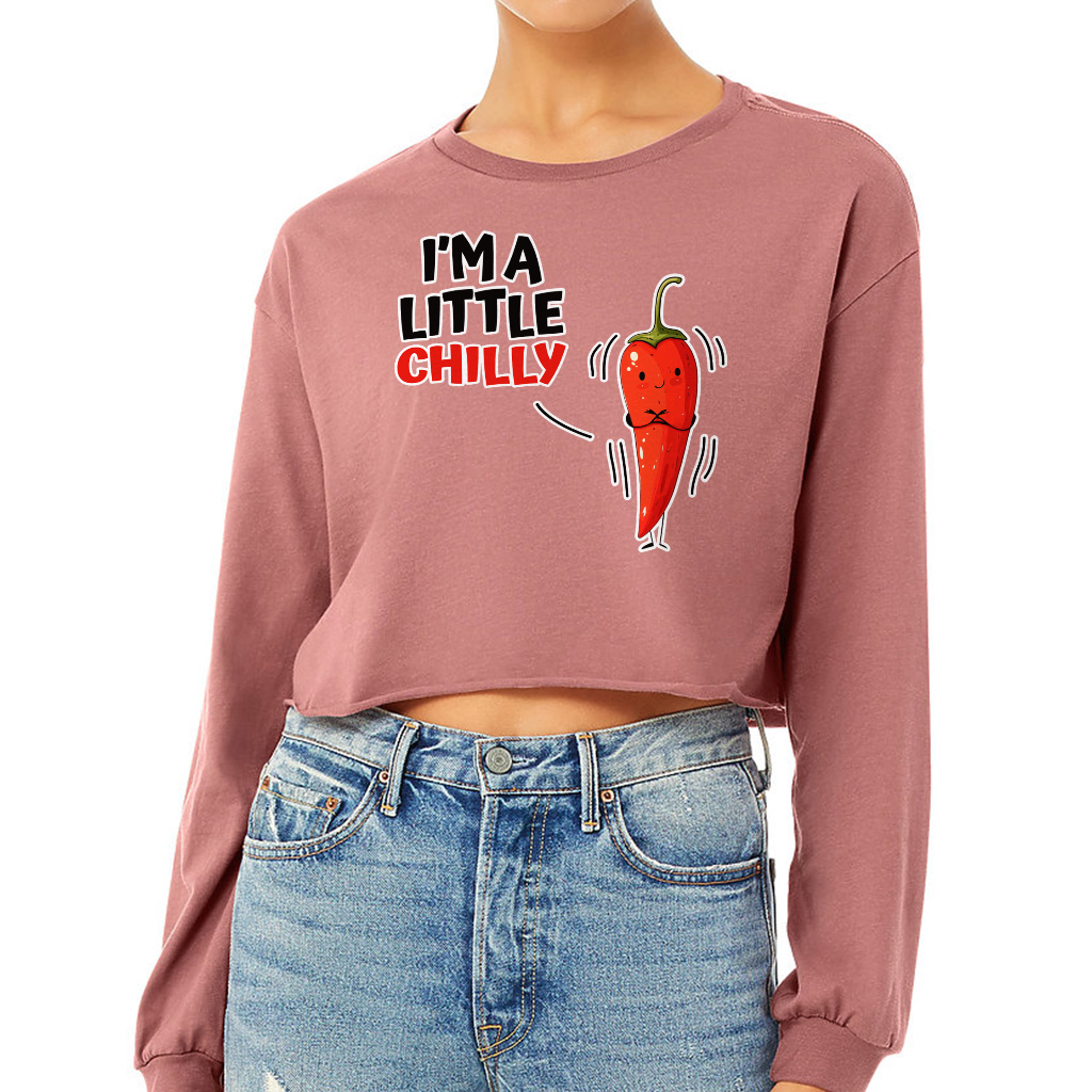 I’m A Little Chili Cropped Long Sleeve Sweatshirt – Funny Pun Women’s Crop Top – Gift for Foodie Long Sleeves Pullover