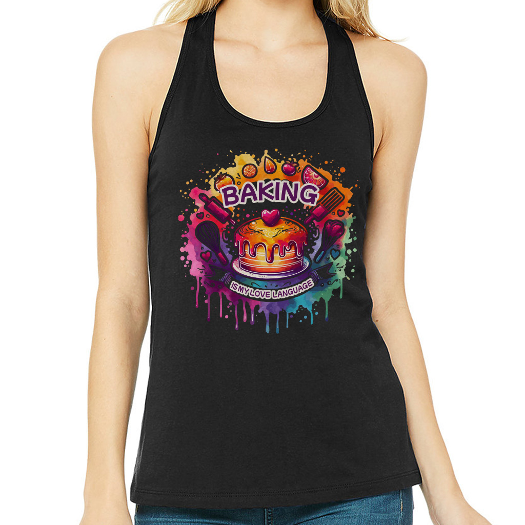 Baking Is My Love Language Racerback Tank – Kitchen Chef Tank Top – Colorful Graphic Tank