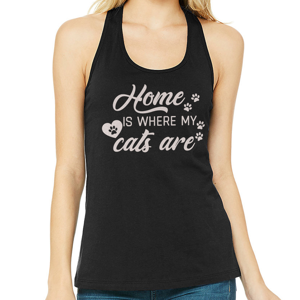 Home Is Where My Cats Are Racerback Tank – Cat Lover Tank Top – Funny Pet Tank
