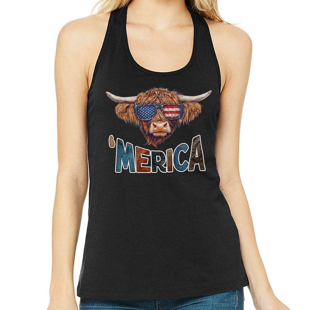 Highland Cow Racerback Tank – Merica Tank Top – Cool Design Tank
