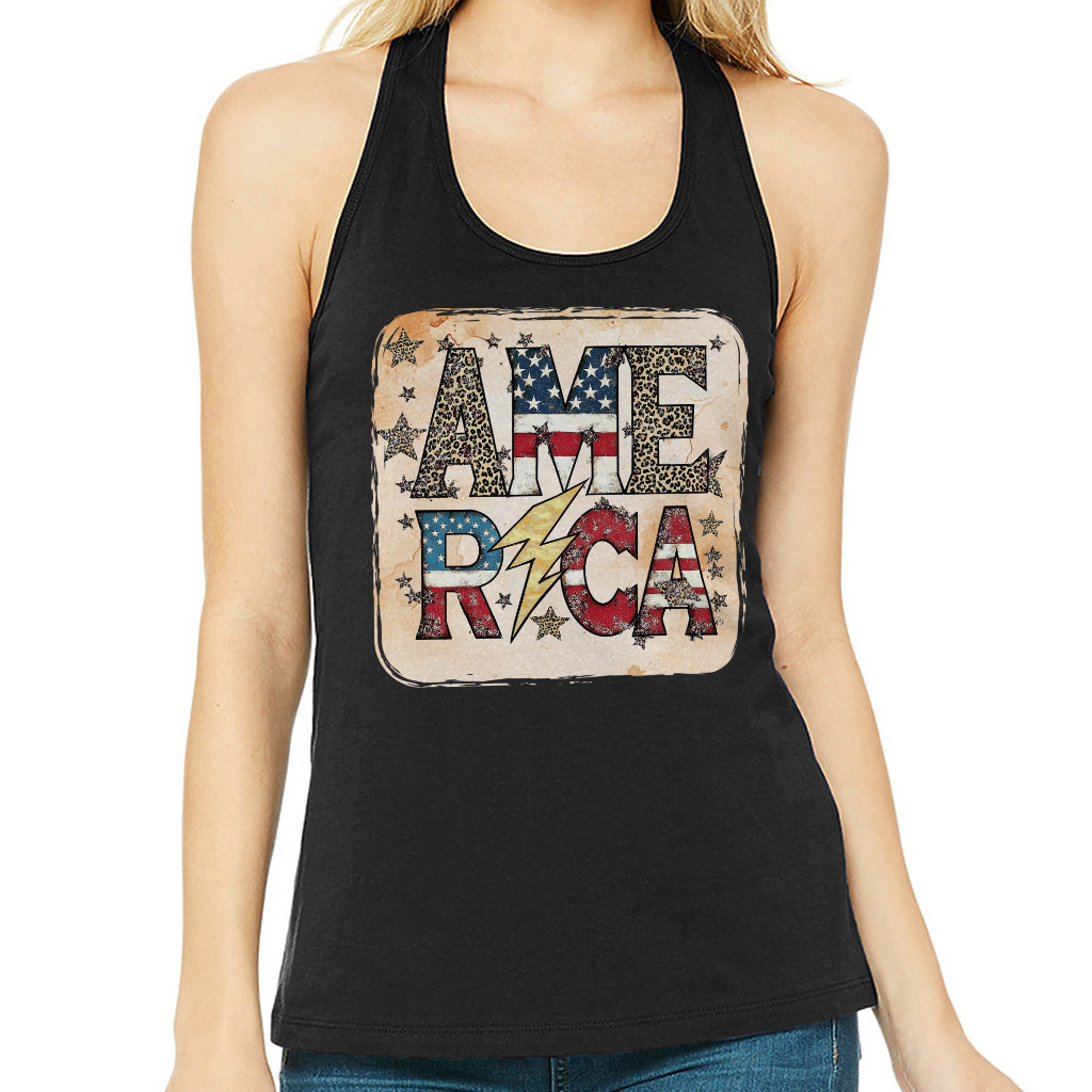 America Graphic Racerback Tank – Retro Design Tank Top – Independence Day Tank