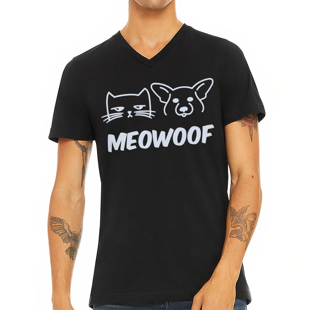 Meowoof V-Neck T-Shirt – Funny Animal Basic T-Shirt – Pets Owner Gift Tee