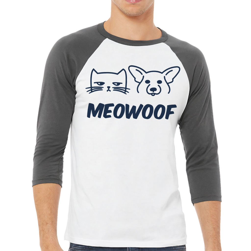 Meowoof Baseball T-Shirt – Pets Owner Gift 3/4 Sleeve – Funny Animal Raglan Jersey Shirt