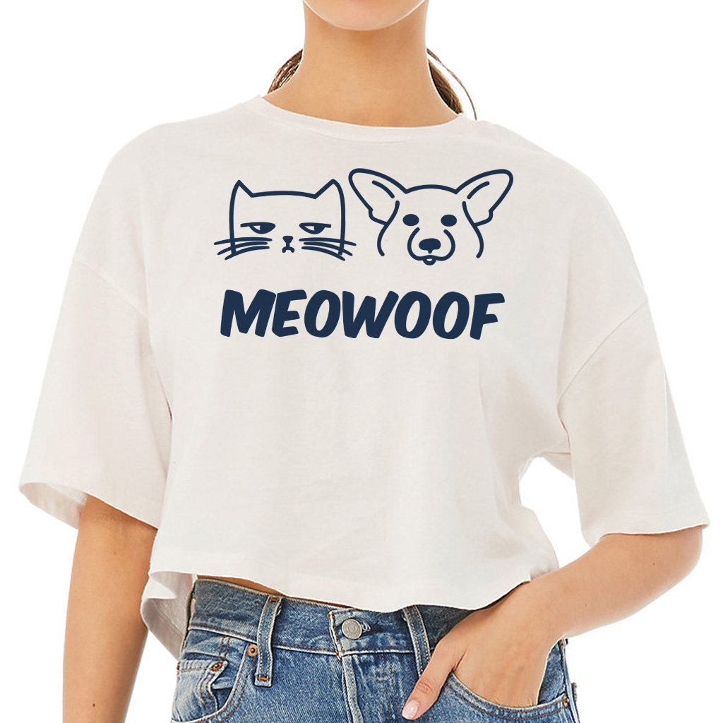 Meowoof Cropped T-Shirt – Funny Animal Trendy Tee – Pets Owner Gift Women’s Basic T-Shirt