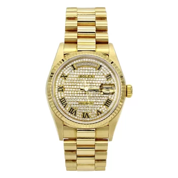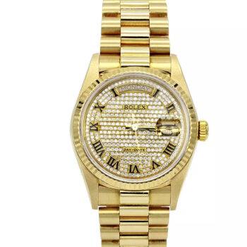 18K Yellow Gold Rolex President Diamond Watch for Men 1ct 36mm