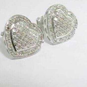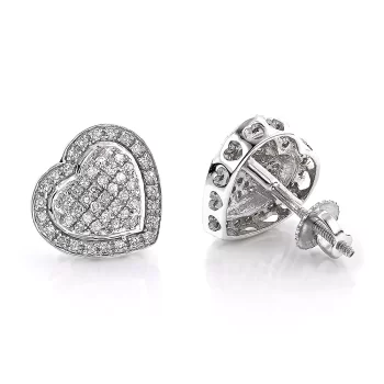 Diamond Heart Earrings Studs: 10k Gold Pave Diamonds 0.5ct