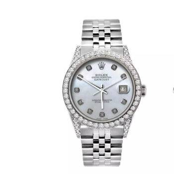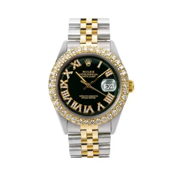 36mm Rolex Diamond Watch for Men Datejust 1603 Black Dial 3.75ct 18k Gold