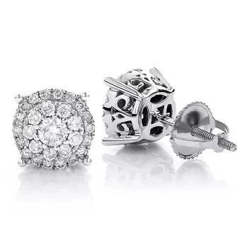 Round Diamond Stud Earrings 14K Gold 0.76ct Pave Cluster Design