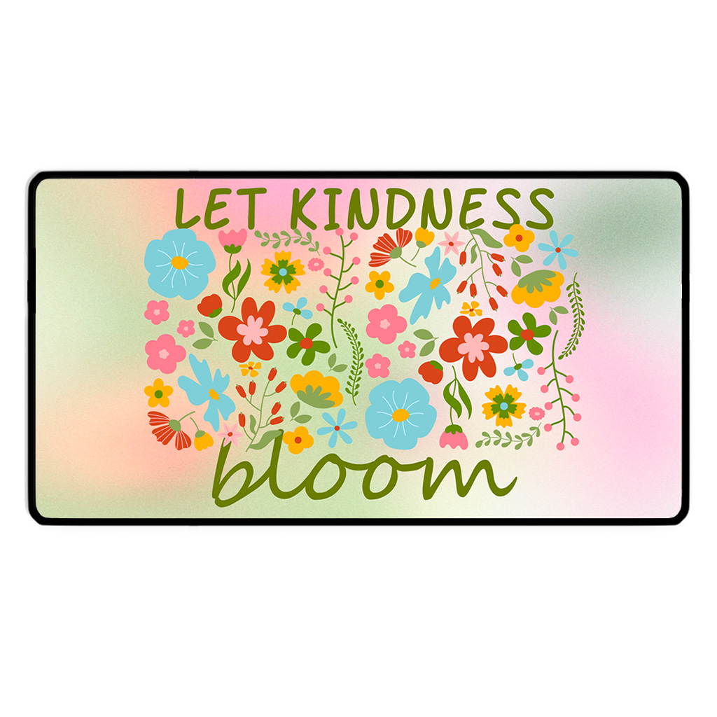 Let Kindness Bloom Desk Mat – Retro Flowers Desk Pad Mouse Pad – Be Kind Laptop Desk Mat