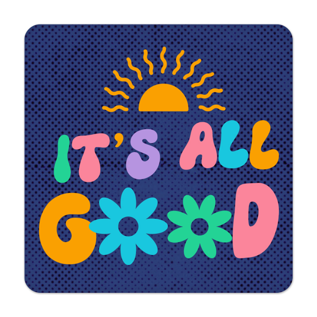 It’s All Good Square Coaster 4-Piece Set – Positive Vibes Coasters for Drinks – Retro Graphic Coffee Tea Mug Coasters