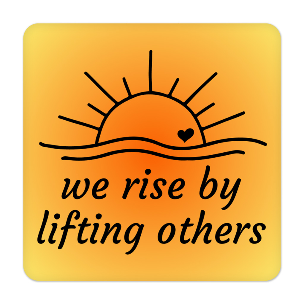 We Rise By Lifting Others Square Coaster 4-Piece Set – Positive Motivational Coasters for Drinks – Sun Graphic Coffee Tea Mug Coasters