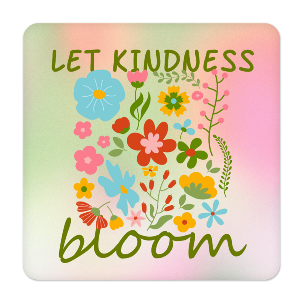 Let Kindness Bloom Square Coaster 4-Piece Set – Retro Flowers Coasters for Drinks – Be Kind Coffee Tea Mug Coasters
