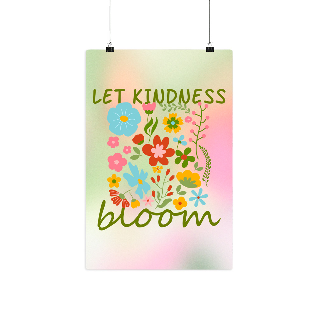 Let Kindness Bloom Matte Poster – Be Kind Wall Art Print – Retro Flowers Home Decor